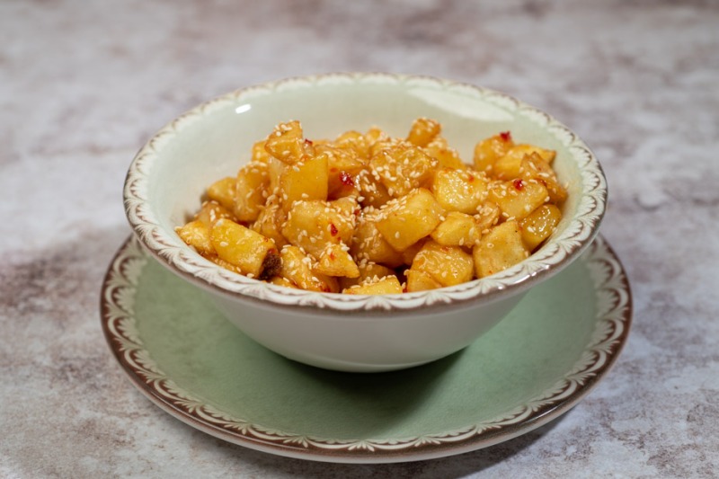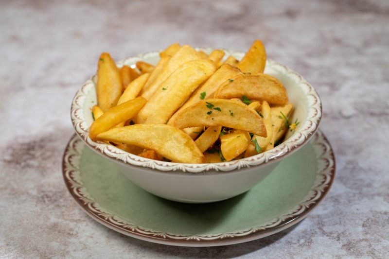 Crispy potato cubes in chili sauce, butter and touches of cream-milk.