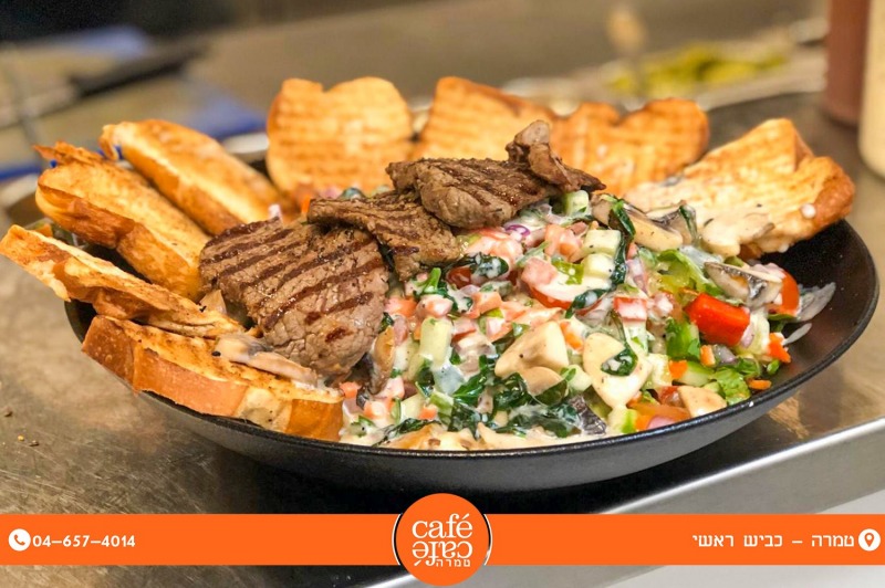 מדליוני פילה, על מצע ירקות טריים, רוטב שמנת פטריות.