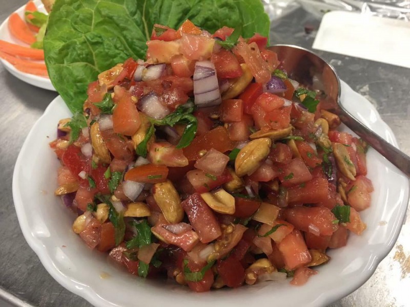עגבניות, בצל סגול, בוטנים, לימון סחוט, שמן זית.